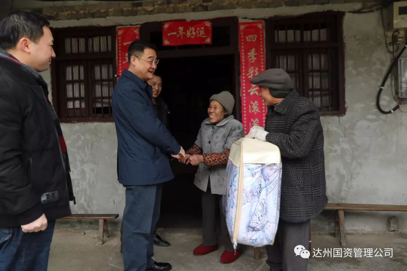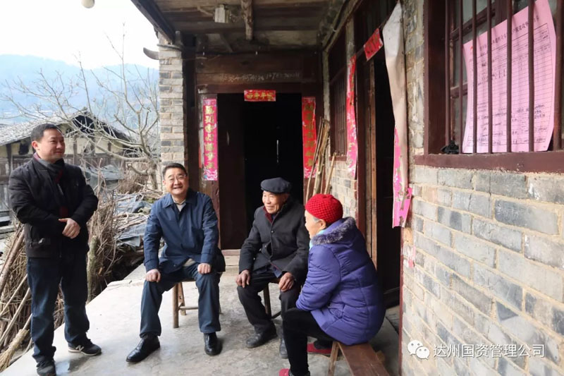 2月2日、3日,達州市國資經營公司黨員干部在黨支部書記、總經理鄧華和黨支部副書記、副總經理謝盛強分別帶領下深入對口幫扶村經開區斌郎鄉何家村開展“十九大精神進院壩,情暖民心共話脫貧”院壩懇談會和“迎新春,送溫暖”慰問活動,現場聽取貧困戶幫扶需求和愿望,共謀2018年幫扶舉措,受到干群熱烈歡迎。