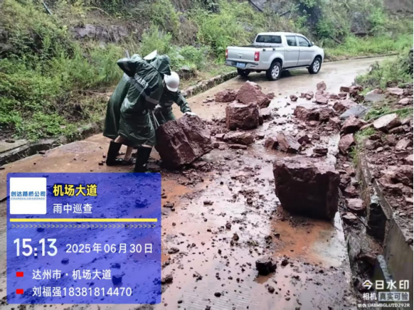 6月30日,達州突降暴雨,引發道路塌方、積水內澇、樹木倒伏等險情,汛期道路安全承受嚴峻考驗。險情就是命令。達州創達路橋公司聞“汛”而動,迅速組織30名運維隊伍、巡查及應急車輛7臺次,奔赴機場大道、達宣快速、達開快速現場,開展應急搶險工作。共計清理倒伏銀杏樹4株、處置邊坡滑坡3處、清運土石方10余方,高效處置險情5處,第一時間恢復了道路安全暢通。