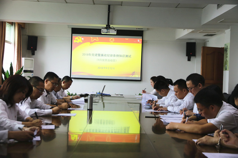 全體黨員共同學習了《中國共產黨紀律處分條例》、《中國共產黨問責條例》,以及《關于組織人事部門對領導干部提醒、函詢和誡勉的實施細則》、《讓嚴格的組織生活成為常態》。并現場進行了黨建暨廉政紀律條例知識測試。
