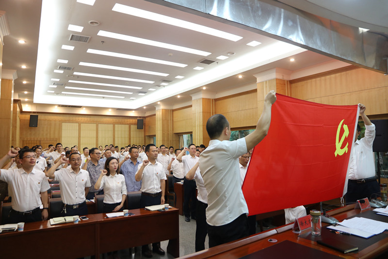 會上,全體黨員面對黨旗,重溫了入黨誓詞,高舉右手,莊嚴許下錚錚誓言:我志愿加入中國共產(chǎn)黨……